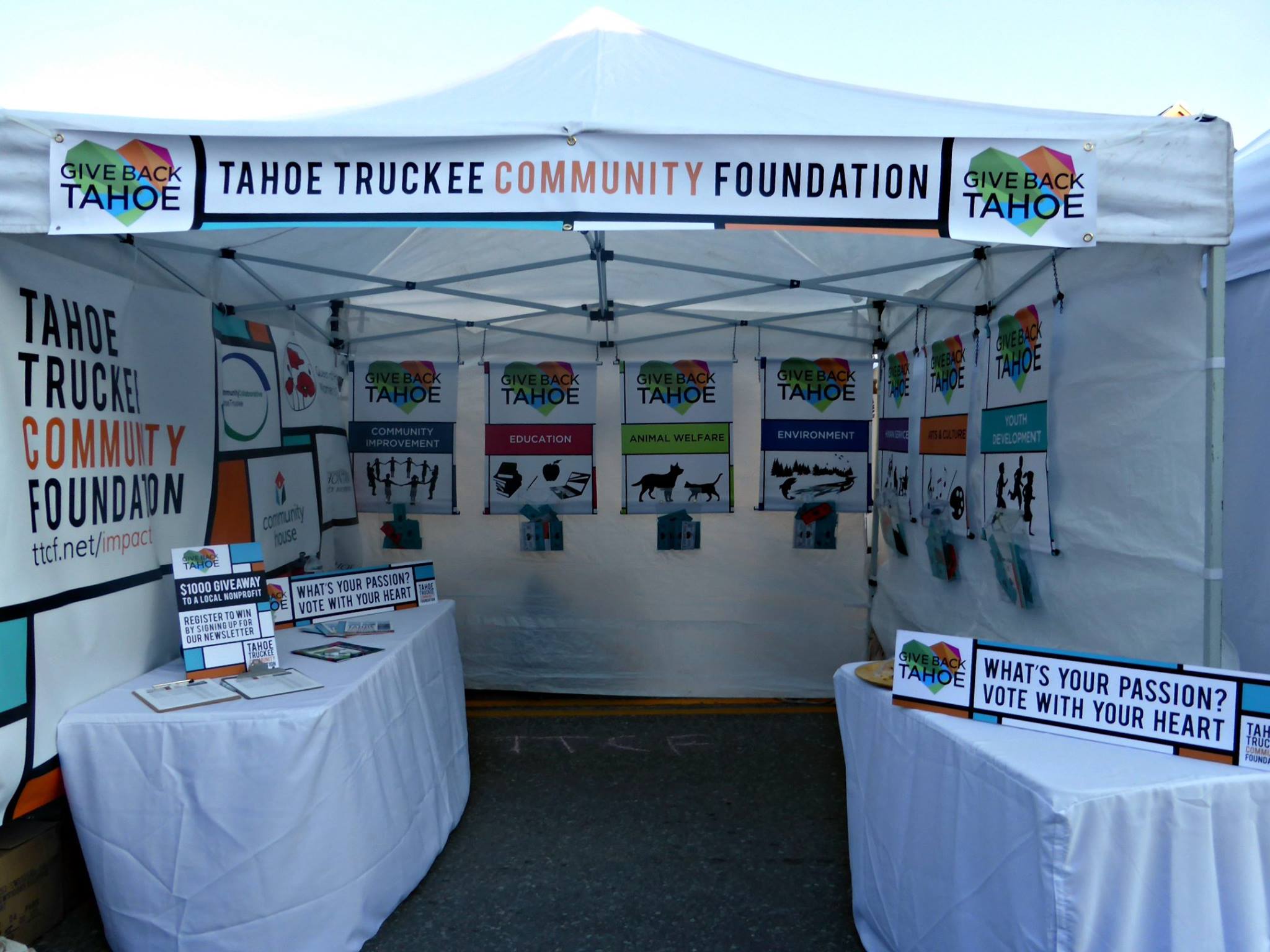 Since the holiday push, Give Back Tahoe has become the primary action campaign for TTCF and their effort to engage people in "street level philanthropy." I have designed many pieces of collateral for the campaign—which includes a weekly page in the local newspaper—and the following photo of the TTCF Give Back Tahoe Booth shows some of my designs in action.